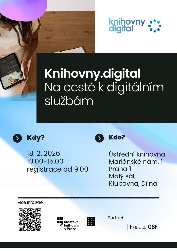Konference Knihovny.digital – Na cestě k digitálním službám se bude konat 18. 2. 2026 v Praze a završí celonárodní téma Digitální gramotnost v knihovnách, které knihovny provázelo po více než dva roky. Jejím cílem je ohlédnout se za proběhlým tématem a poskytnout příležitost k networkingu nadšencům, kteří se chtějí tématu i nadále věnovat.